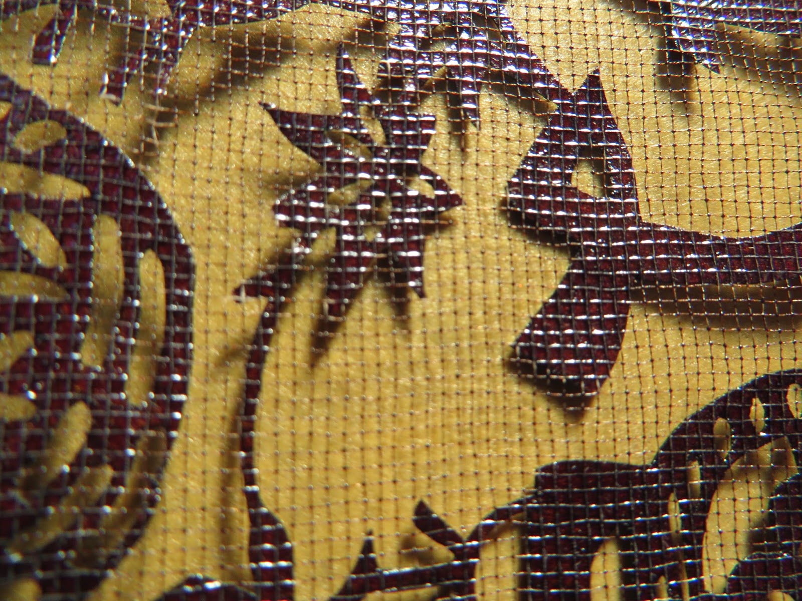 Deres stencil er et stykke specielt papir, som de skærer mønster ud i. Bare det at skære f.eks op til 7 stenciler, så de passer præcist oven på hinanden. Det er ret godt gået, håndværk som batter. Rapporten var trekanter i hjørnerne og så blev stencilen sat fast med en bambuspind med en nål ned i bordet. I kan se den. Hanne og jeg kan gå hjem og lægge os. Farven bliver duppet på med en rund speciel børste, han har farven i en ene børste og fra den sætter han den anden børste  ind i hårene og så kommer der lige tilpas nok med farve. Helt utroligt system.